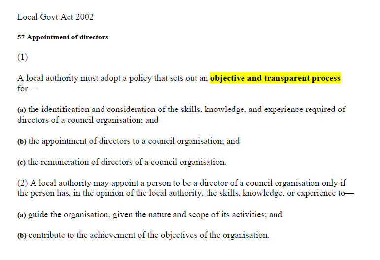 We consulted the Local Government Act 2002 which is pretty clear about some things when creating a Council Controlled Organisation (CCO). The wording in the legislation is attached – with that word “Transparency” front and centre.