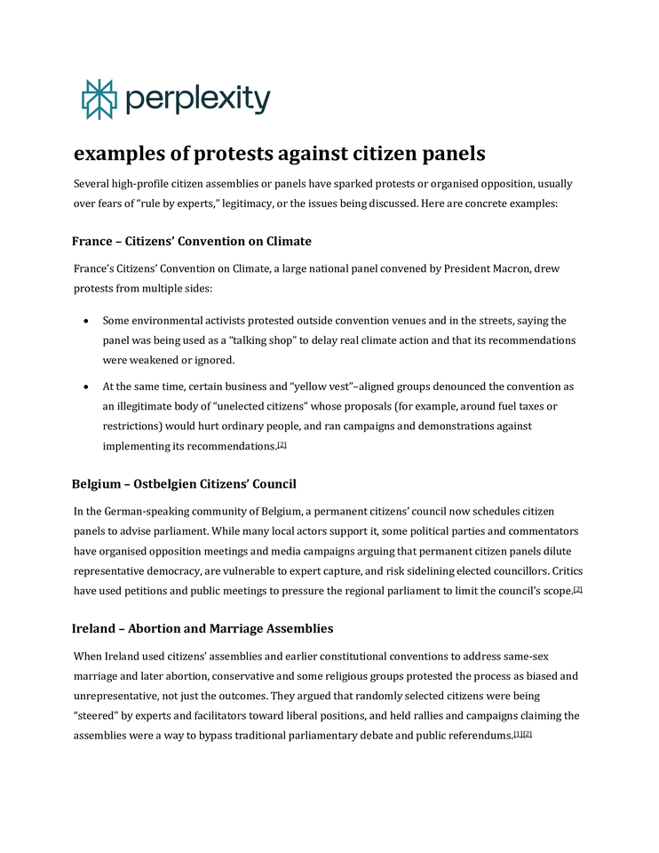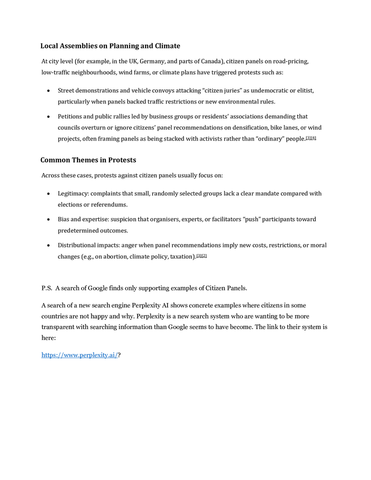 We’re not sure if our local community is aware there have been a reasonable number of protests by everyday citizens in Europe, by those who don’t get invited on to these panels. Many of the people who pay the rates have not been happy with the outcomes of Citizen Panel meetings. (2 photos are attached as a summary of European protests from an internet search - with an explanation at the end about this new Internet Search platform).