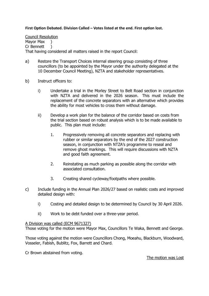 To be fair with the voting, the lack of “factual” safety data which should have been captured by the Transport Choices Team, and presented to the Councillors, was a big factor in some of the Councillors not being comfortable to vote for full removal.