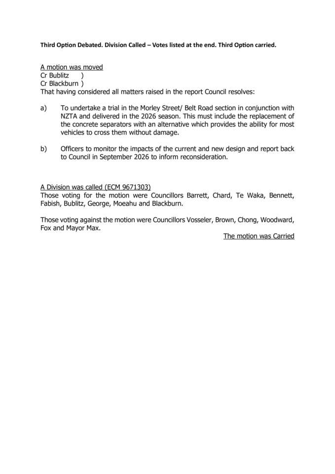 NPDC officers will monitor the impacts of the current and new design and report back in September 2026.