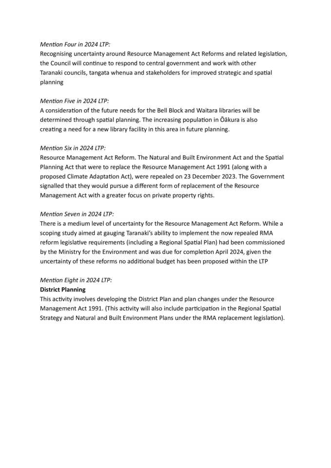 There is mention in the LTP that the new RMA will be very different, but 2023 spatial planning work continues anyway, even though Central Government asked for a hold to be put on this work.