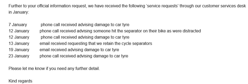 We had a person contact us, and the council, in Mid January about an incident on the cycleway. The Council did not report on this incident.