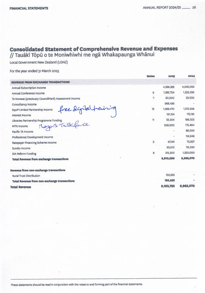 - $1.3 million for Equip Partnership Income – this is stated as free digital training since covid – it’s free to the Councils - but someone is paying for that free training – perhaps the taxpayer instead of the ratepayer ?