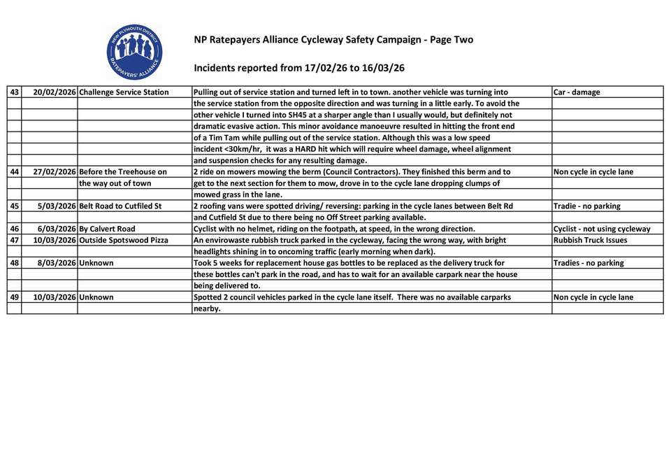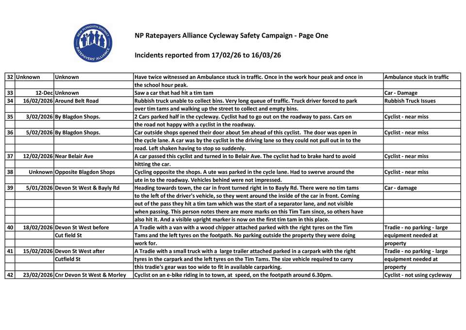 We have our Mid March Cycleway Incident report out today, with 18 new incidents, near misses or injuries since mid February 2026.